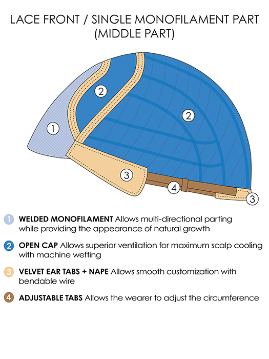 - Monofilament Part – Allows the appearance of natural hair growth where the hair is parted.