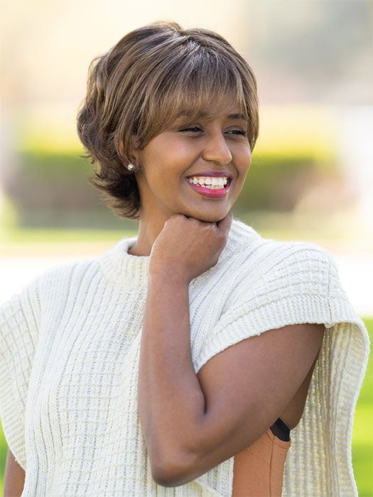 Carte Blanche by is a fresh take on the classic fluff-back silhouette, this short, barely waved cut includes a hand-knotted top and sheer lace front for natural looking, off-the-face styling. Also available in gray colors, beautiful shades of grey.