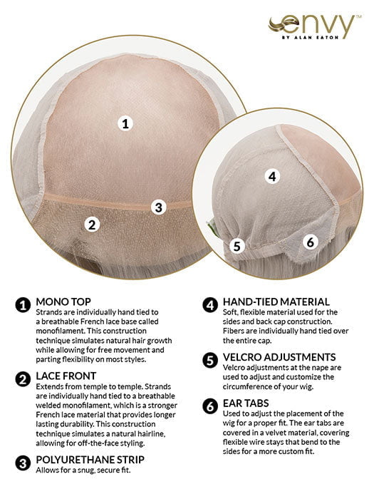 - Monofilament Top – Allows multi-directional parting while providing the appearance of natural hair growth where the hair is parted.