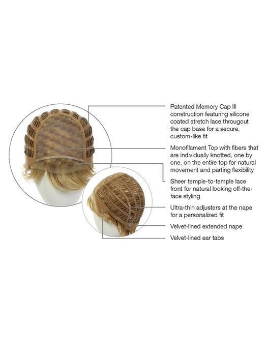 Crushing on Casual Wig by is a short cut wig with plenty of style and fullness. Beautifully tapered lengths throughout offer a multitude of styling options from full and soft to textured and piece-y. The slightly angled fringe can be worn onto the face or swept away while the razor cut nape creates a soft clean look in the back. The Sheer Indulgence temple-to-temple lace front monofilament top allows for natural looking off-the-face styling and parting options.