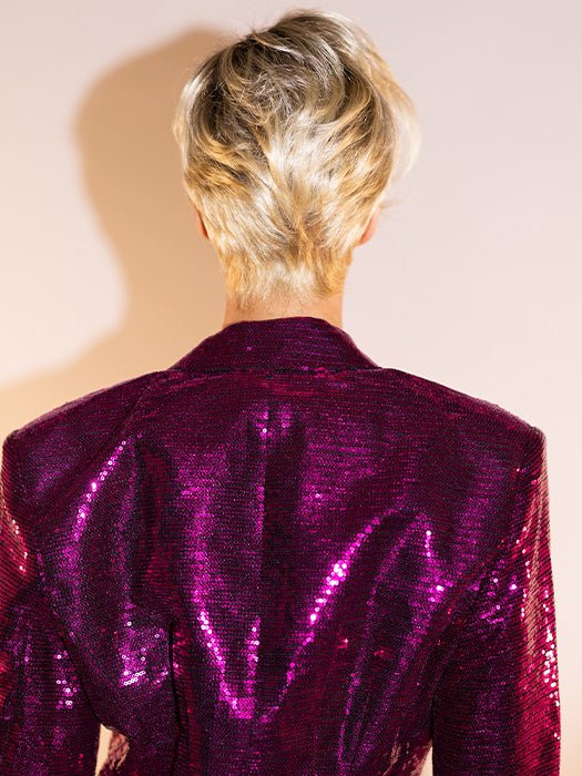 Disc by is a short, asymmetrical boy cut with a soft, tapered neckline and angled fringe. This modern short wig features a monofilament left-side part, and is ideal for a petite to average head size. The density of the ready-to-wear synthetic hair looks more like natural hair and requires little to no customization or thinning. Disc is part of the Ellen Wille Hair Power collection.