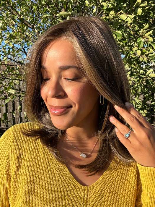Drew by Jon Renau® is a classic mid-length layered style. The heat defiant synthetic fiber stands up to heat and humidity and allows for styling versatility. Layers along the fringe frame the face to perfection. Long layers throughout the sides and back give the hair gorgeous movement. Smart Lace ™ and a monofilament feature allows for styling away from the face and parting versatility. Drew is a vibrant beauty!
