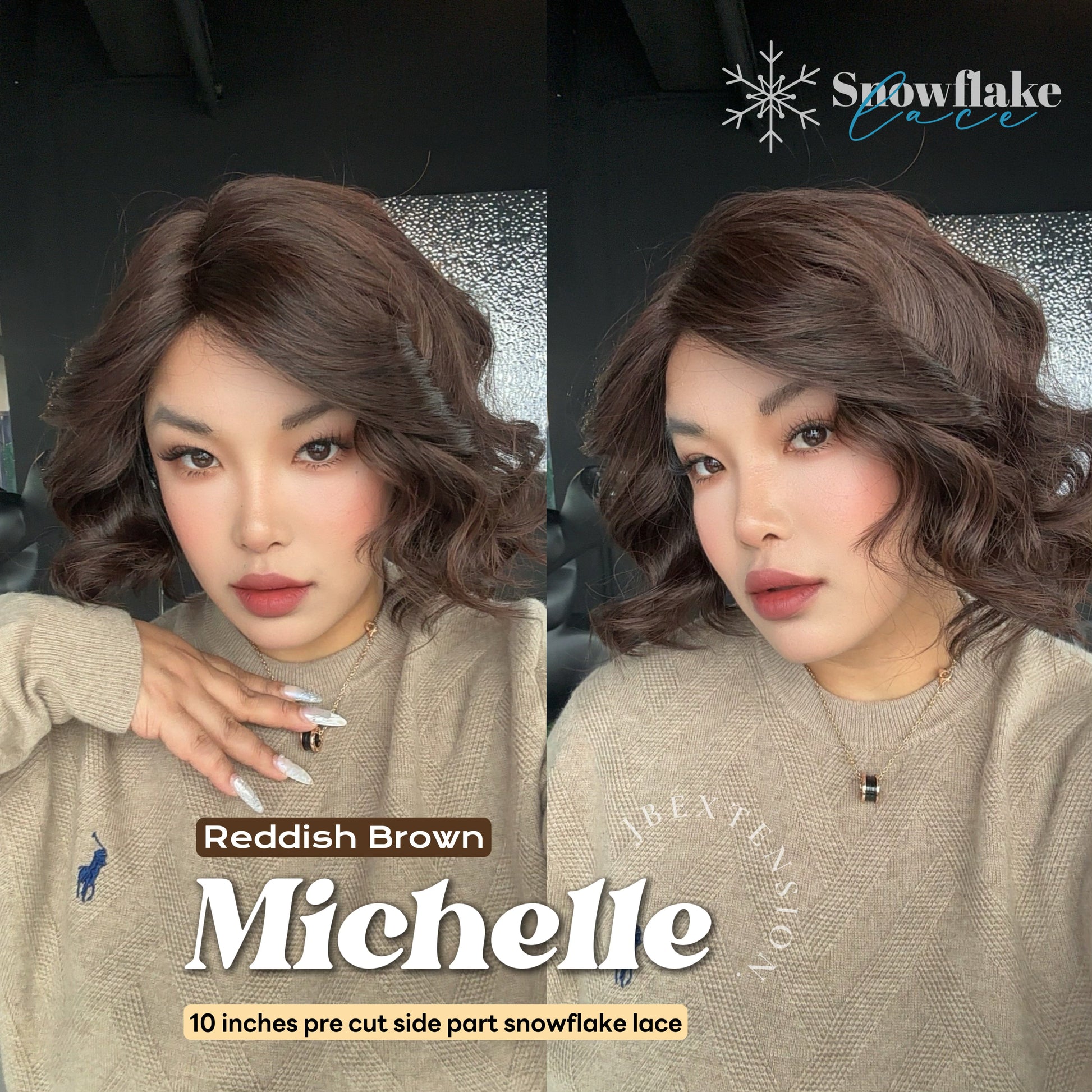 JBEXTENSION 10 Inches Reddish Brown Pre-Cut Side Part Snowflake Lace Frontlace Glueless Wig MICHELLE REDDISH BROWN【BENDY EAR TABS】