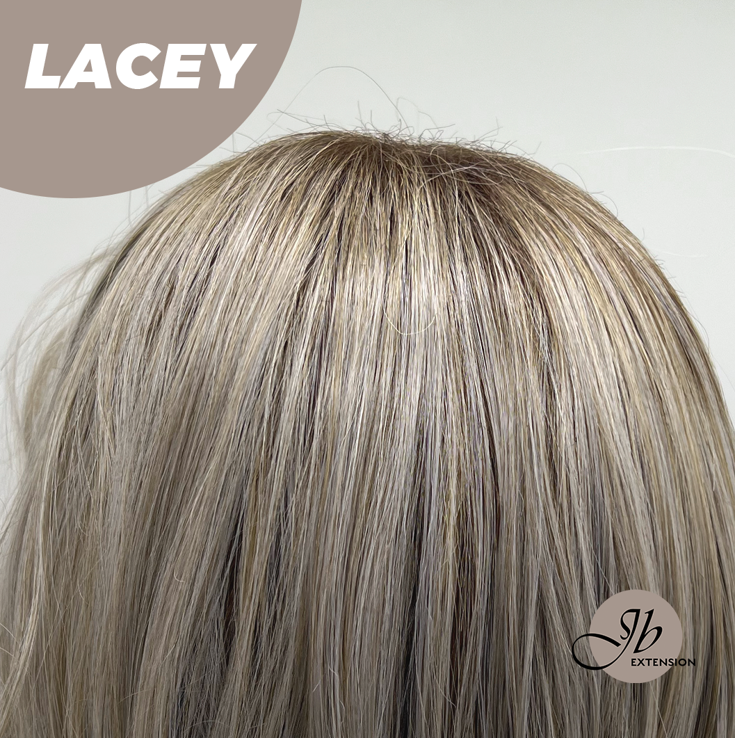JBEXTENSION 18 Inches Curly Mix Grey Wig with Dark Root Women Fashion Full Machine Wig LACEY【PLUS PERMATEASE】【BENDY EAR TABS】