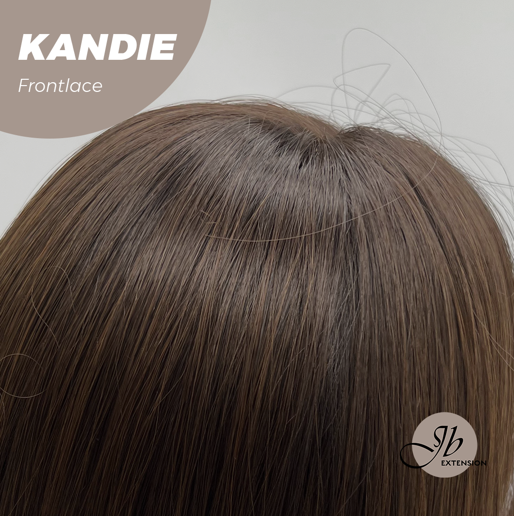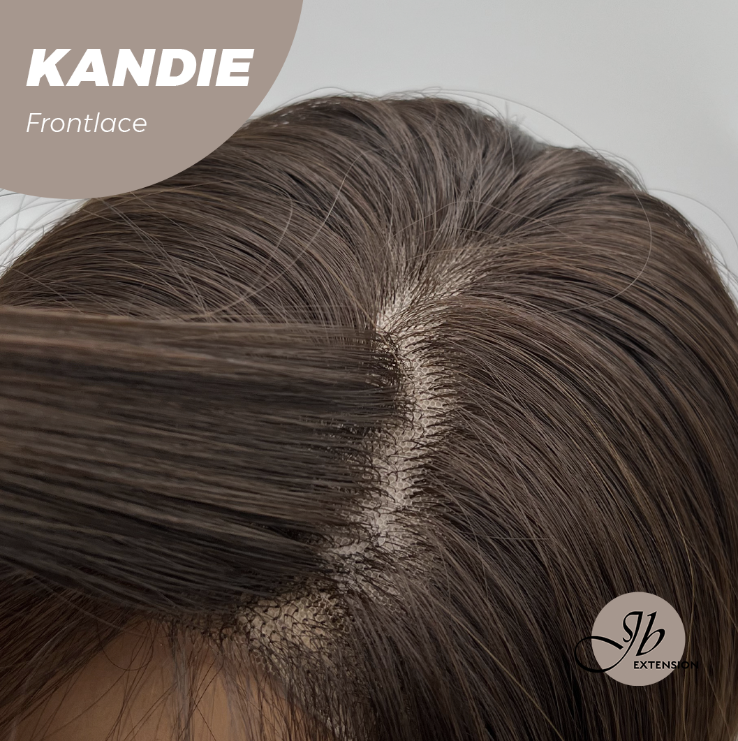 JBEXTENSION 28 Inches Curly Mocha with Dark Root Pre-Cut Frontlace Glueless Wig KANDIE