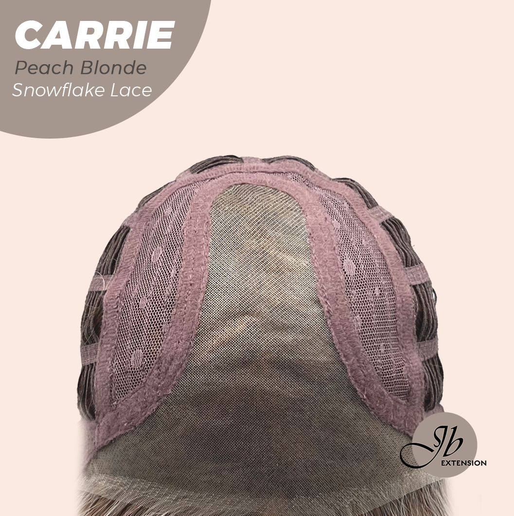 JBEXTENSION 11 Inches Short Hair Peach Blonde Pre-Cut T Part Snowflake Lace Frontlace Glueless Wig with Bangs CARRIE PEACH BLONDE【BENDY EAR TABS】