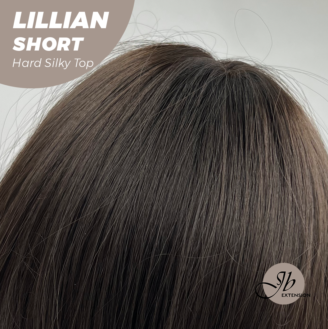 JBEXTENSION 22 Inches Scalpiana Tea Black Darkest Brown Curly 3.5X4 Hard Silky Top Natural Scalp Effect Wig LILLIAN SILKY TOP SHORT