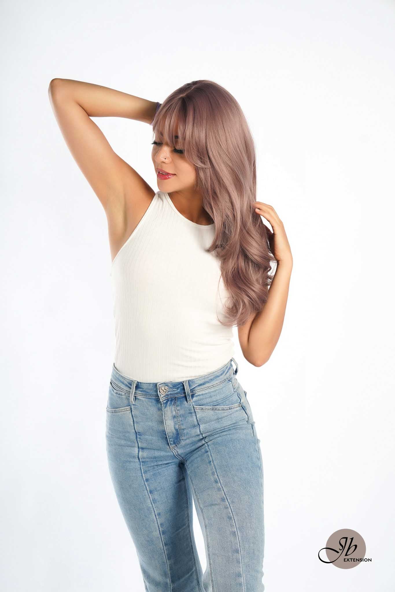 JBEXTENSION?22 Inches Smoke Pink Curly Wig With Bangs?CAROL
