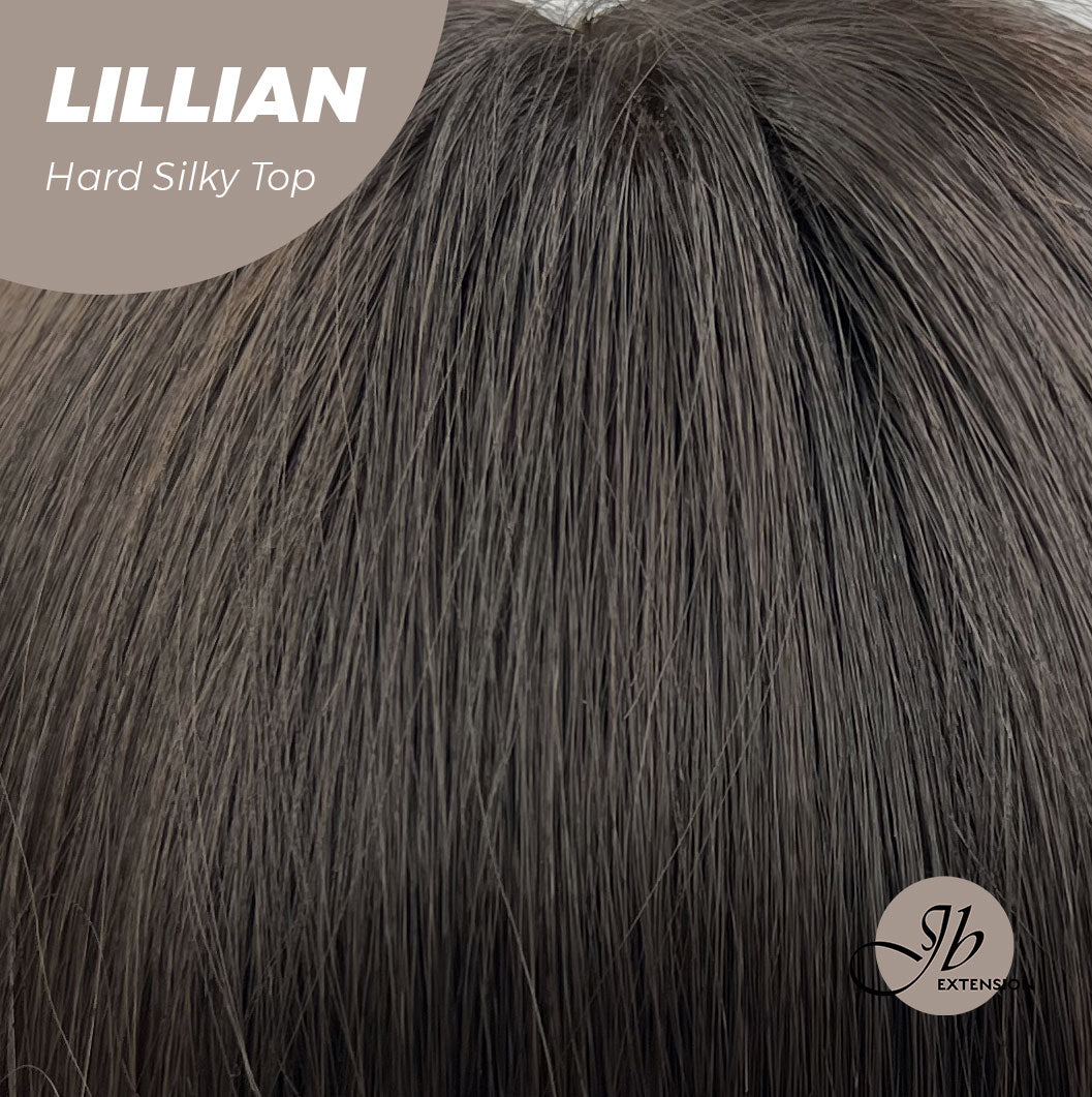 JBEXTENSION 26 Inches Scalpiana Tea Black Darkest Brown Curly 3.5X4 Hard Silky Top Natural Scalp Effect Wig LILLIAN