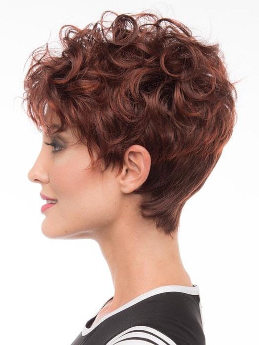 Kaitlyn by Envy is a short, trendy, and curly synthetic wig. You can shake it and wear it tousled or tightly curled. The layered side bang can be cut or trimmed by your stylist. The layered curl provides full coverage along the hairline. You can enhance the curl and texture by shaping and re-curling with your fingers.