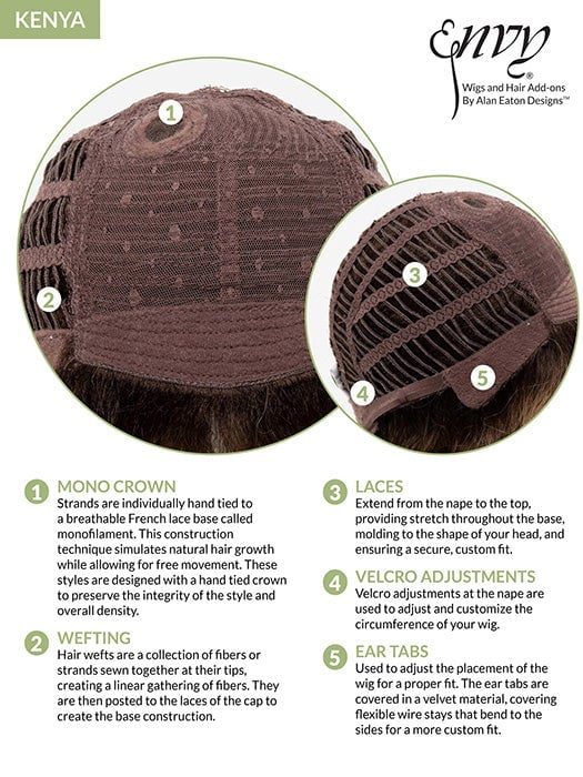 With a full head of bouncy curls, Kenya Wig by Envy has chin-length 'do gives you volume for days. Her mono crown construction gives this wig one of the most natural appearances available, so you can run your fingers through those curls without revealing a thing.