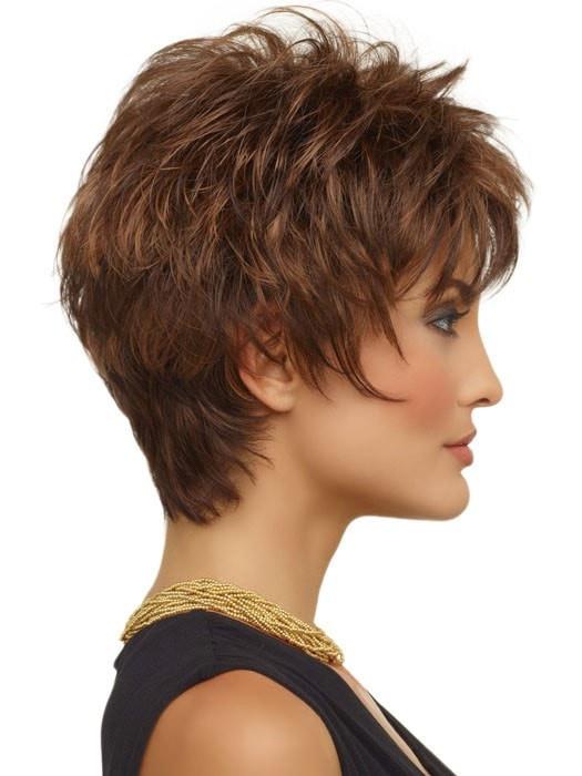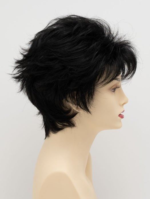 Kitana wig by Envy Wigs is a classic short textured cut. Razored layers create volume and lift at the crown. Soft wispy bangs and sides frame the face perfectly. And extended nape hugs the neck and creates a modern silhouette. The hand-tied construction creates natural movement in the hair. A full monofilament top creates the appearance of natural hair growth from the scalp which adds to the natural appearance and believability of the wig.
