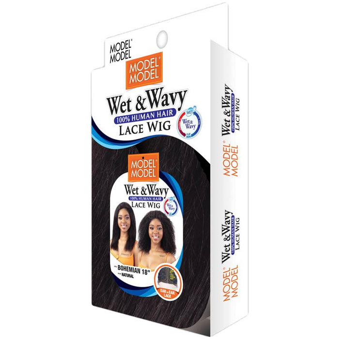 "Model Model Wet & Wavy Lace Front Wig Bohemian 18" is made with excellent quality, high-density and an ear to ear lace front with a 5" center lace part.