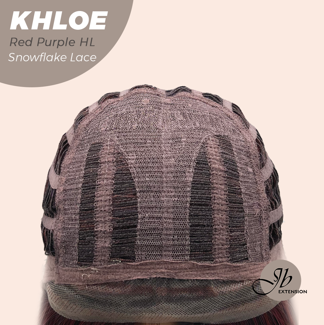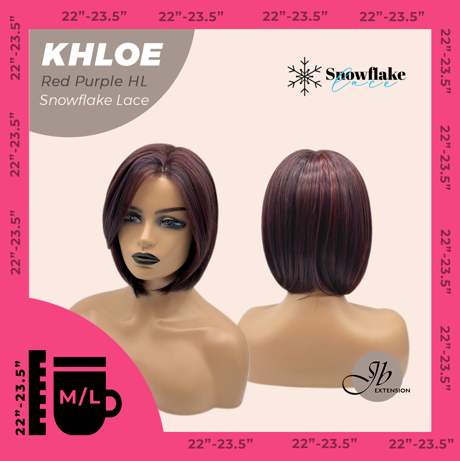 JBEXTENSION 12 Inches Bob Cut Red Purple Highlight Pre-Cut Snowflake Lace Frontlace Glueless Wig KHLOE RED PURPLE HIGHLIGHT【PERMATEASE】【BENDY EAR TABS】- M/L