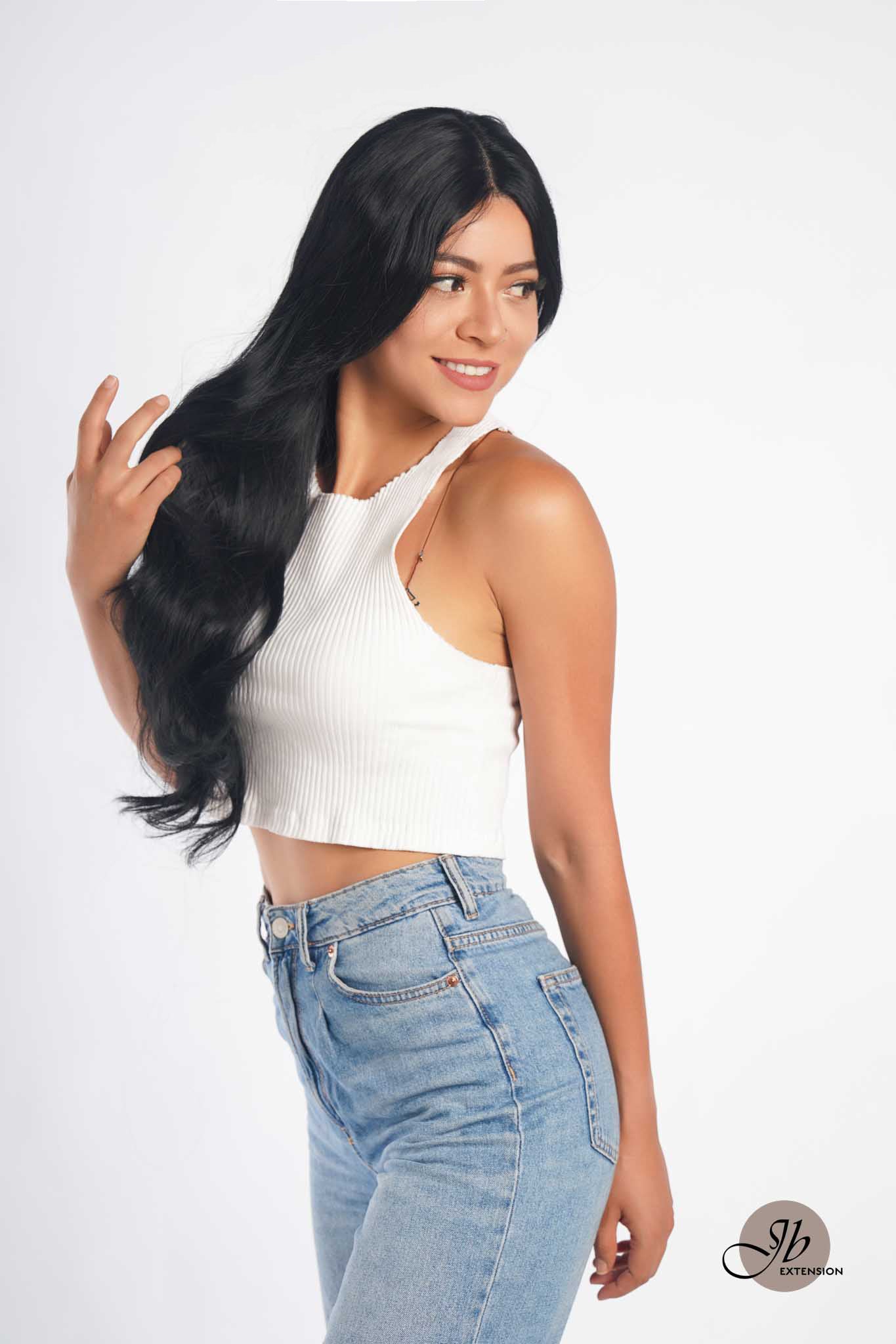 JBEXTENSION 26 Inches Curly Women Jet Black Wig Pre-Cut Frontlace Glueless Wig EMMIE JET BLACK