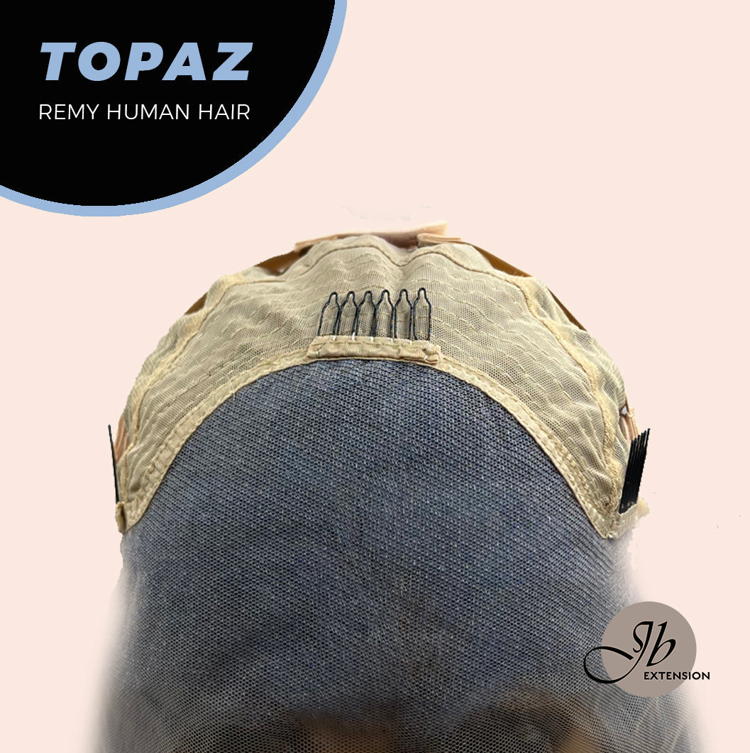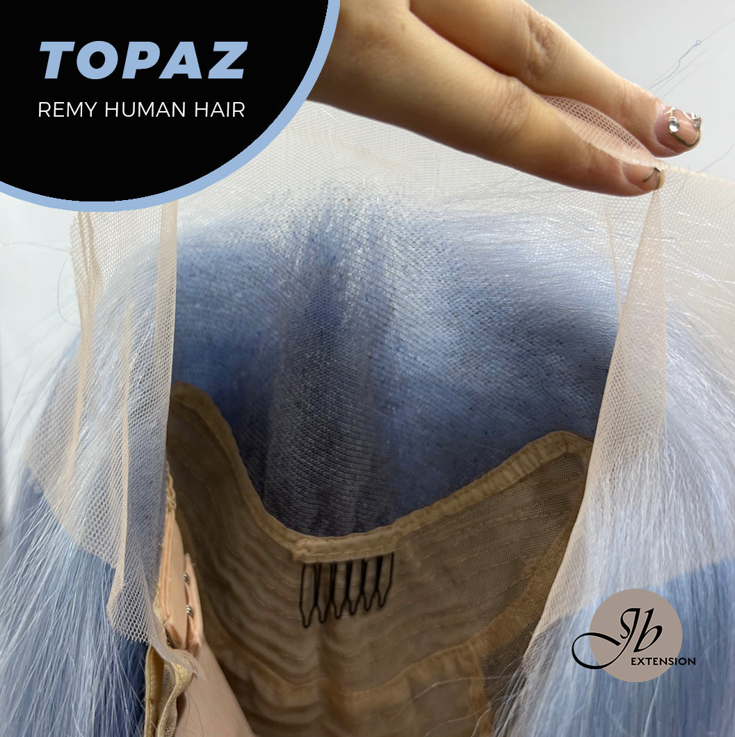 JBEXTENSION GEMSTONE COLLECTION 12 Inches Real Human Hair Light Blue Bob Cut Free Parting Wig TOPAZ