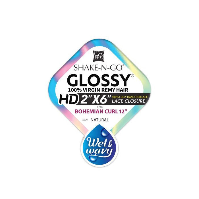 Shake N Go Glossy 100% Virgin Remy Hair HD 2x6 Hand-Tied Lace Closure - BOHEMIAN CURL 12 - Wet & Wavy